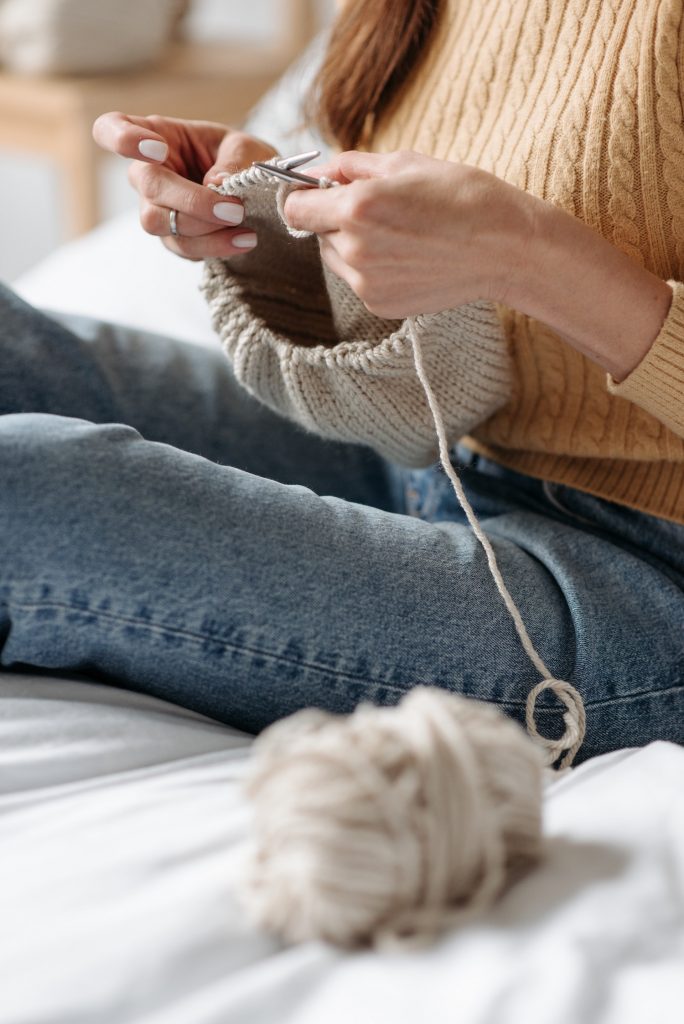 Pour commencer, privilégiez vraiment les aiguilles à tricoter droites, avec une boule à l’extrémité.