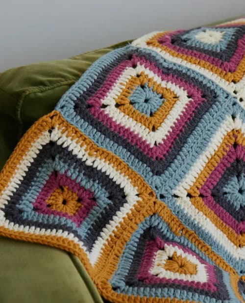 Si vous souhaitez réaliser un plaid, vous pouvez assembler différents carrés de motifs différents. Le rendu sera vraiment unique ! En revanche, nous vous conseillons de rester sur un seul type de fil pour que la matière soit bien uniforme.