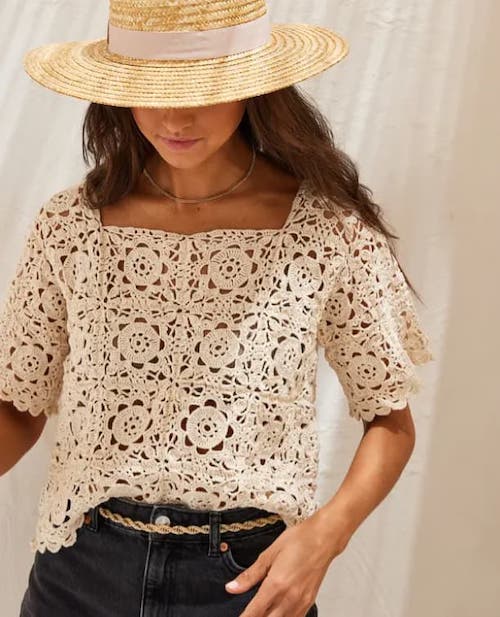 Les carrés de nos grands-mères étaient souvent réalisés en dentelle et le rendu est magnifique (comme le top ci-dessous), mais il vaut mieux se faire la main avec des modèles plus faciles et rapides (comme l’écharpe ci-dessous). Choisissez un crochet de taille moyenne, dans l’idéal n°6 ou au-dessus.