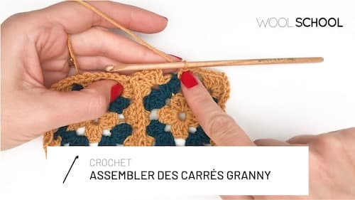 Dans notre cours en ligne sur les carrés granny, nous vous montrons en vidéo comment réaliser cette couture (étape « assembler des granny »). Pour vous inscrire à ce cours gratuit, c’est ici.