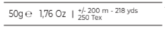 Vous pouvez lire ici que votre pelote pèse 50 grammes pour plus ou moins 200 mètres de fils.