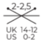 Les numéros 2-2,5 indiquent les numéros d’aiguilles ou de crochet à utiliser avec cette pelote. Le système de numéro d’aiguilles n’est pas international, c’est pourquoi il y a une correspondance pour le numéro d’aiguilles ou de crochet UK et US.