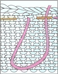 - Puis, piquez l’aiguille sous le tricot pour la faire ressortir au-dessus dans la 2e maille.