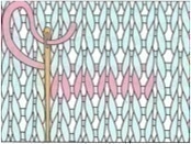 Cette broderie se réalise directement sur le tricot. Son principal but est de recouvrir une maille jersey.
