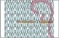 - Piquez maintenant à droite de la maille située au-dessus de celle que vous venez de broder. En passant sous le tricot, faites-la ressortir à gauche de cette maille.