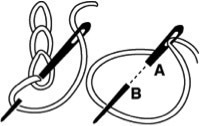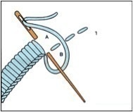 Comme sur le dessin ci-contre, faites sortir l’aiguille en A en travaillant de droite à gauche.