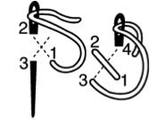 Sortez l’aiguille en 1, puis piquez-la en 2 et faites-la ressortir en 3.
