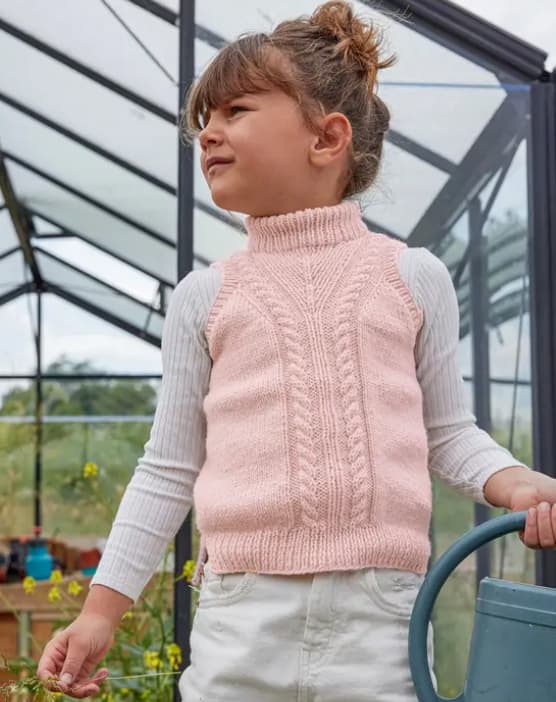 On peut également tricoter une très longue bande d’encolure en côtes qui sera ensuite assemblée au gilet pour former un col rond sur le devant et un col en V sur l’arrière, comme pour le pull Ilona.