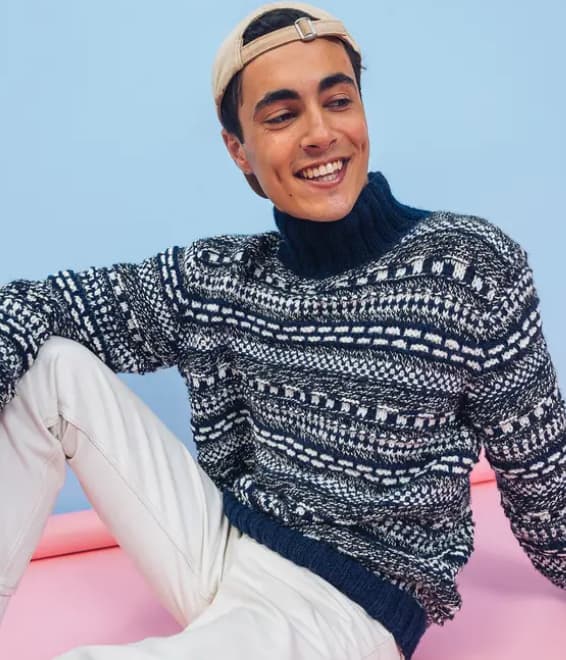 Le col roulé est un long tube tricoté que l’on replie en deux pour tenir le cou bien au chaud. Il peut être tricoté en relevant les mailles ou en cousant une bande d’encolure. On peut l’imaginer aussi bien sur des pulls pour enfants, que pour des modèles homme ou femme.