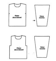Les patrons sont très faciles à comprendre car il s’agit d’un montage de pièces ultra simple. La manche droite se fait sans emmanchure, c’est-à-dire grâce à des formes manches tubes et manches encastrées à coudre sur le corps de l’ouvrage. On vous explique.