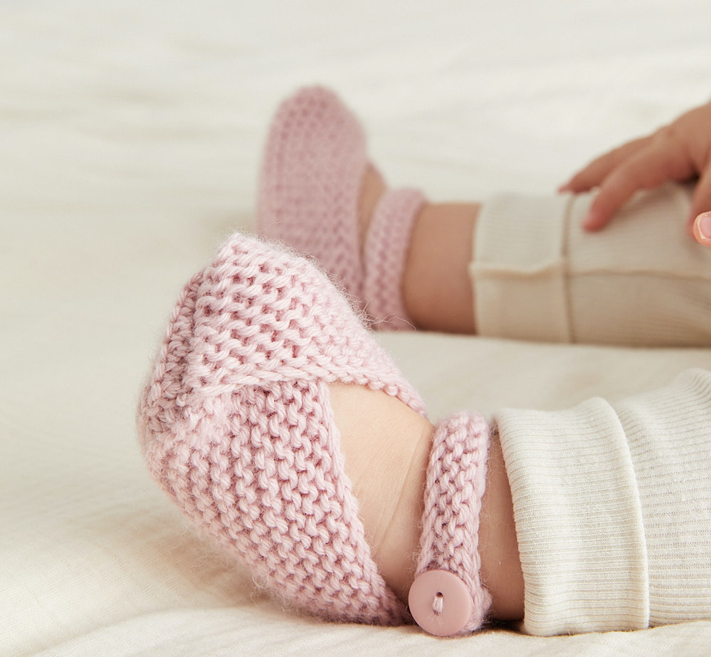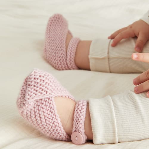 J’apprends les bases du tricot et je tricote mes premiers chaussons pour bébé.
