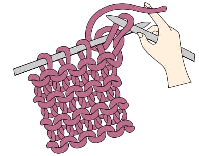 ÉTAPE 5 : Répétez ces étapes sur chaque maille du rang, vous savez maintenant tricoter le point mousse !