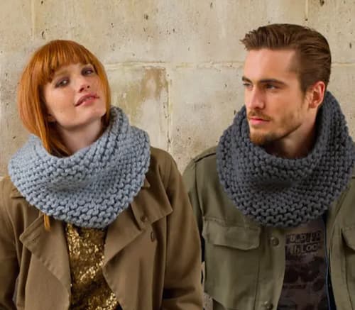 Si c’est votre premier ouvrage, nous vous conseillons de commencer par tricoter un snood au point mousse : le snood se prête bien aux grosses aiguilles et à une laine épaisse, sa forme est très simple, et ce premier ouvrage sera rapide à tricoter !