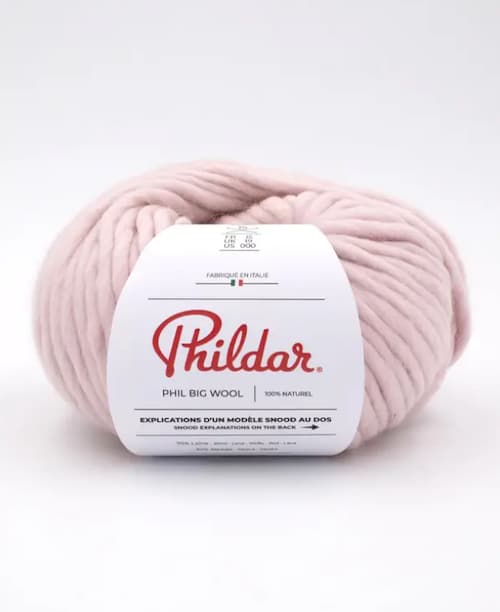 La laine mérinos Phil Big Wool sera également parfaite pour débuter le point mousse, vous la retrouverez dans le 2è cours d’initiation au tricot (réalisation d’un bonnet au point mousse), et dans notre 3e cours d’initiation au tricot (réalisation d’un pull au point mousse).
