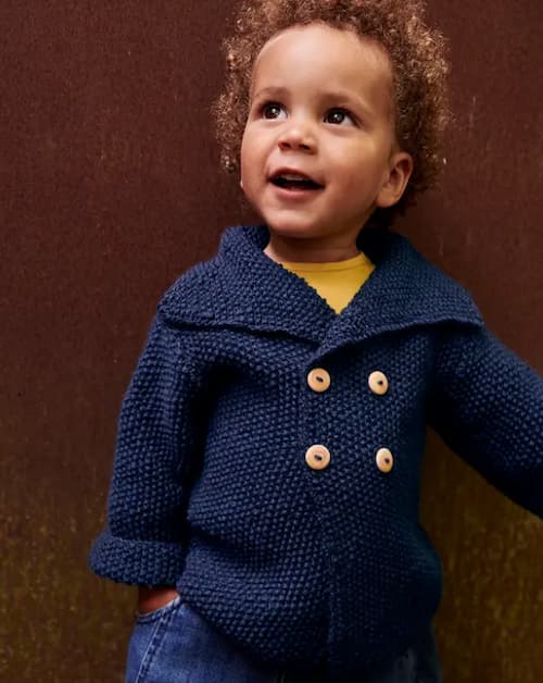 De même sur ce modèle pour enfant, le point de riz permet de tricoter la pièce entière, et son motif régulier lui donne un petit effet sophistiqué !