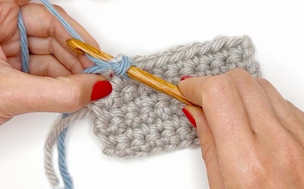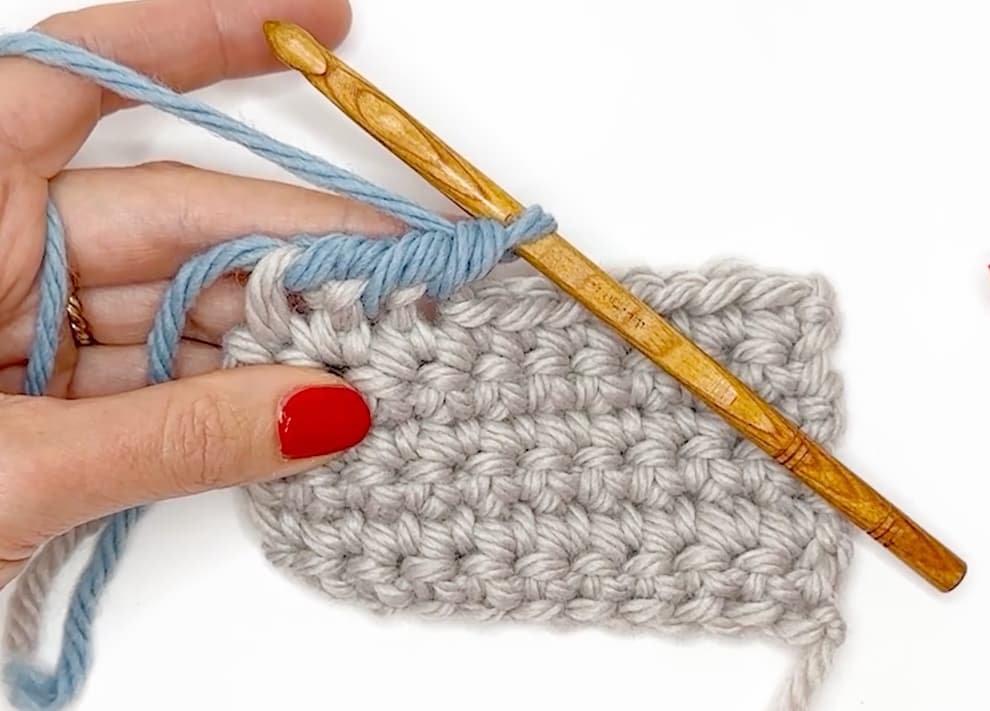 Si je viens de crocheter le dernier rang et que je souhaite continuer sur un rang de point écrevisse, je reste à l’endroit de ma dernière maille, sans retourner mon ouvrage.