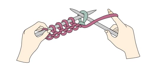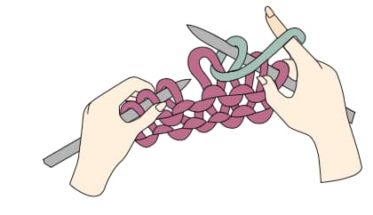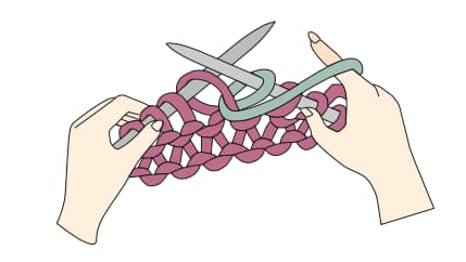 La manière dont on pique l’aiguille dans la maille n’est pas la même avec une maille endroit ou une maille envers. Quand on tricote une maille à l’envers, l’aiguille droite doit piquer la maille par la droite, en partant du bas et en remontant au-dessus de l’aiguille gauche.
