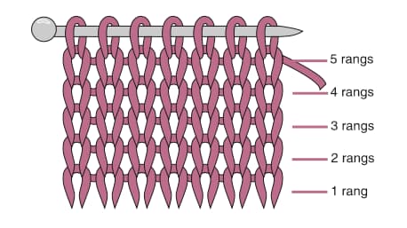 Pour tricoter le point jersey, on alterne les rangs de mailles endroit et les rangs de mailles envers :