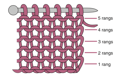 Comme vu précédemment, on le tricote en commençant par un rang endroit puis un rang envers :