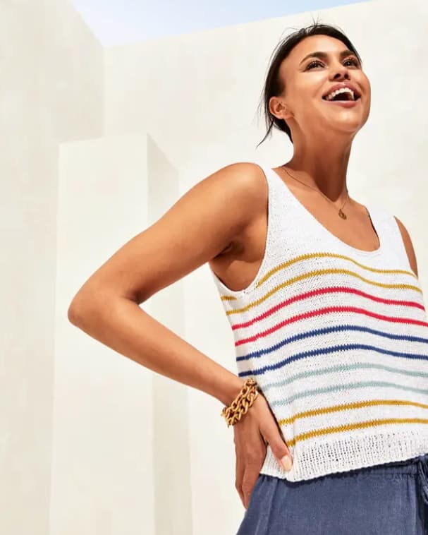 Bien moins épais que le point mousse, le point jersey est à privilégier pour les tops d’été.