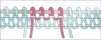 1er rang de jacquard (vue de l’envers du travail)