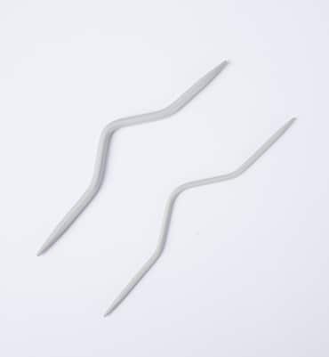 Les aiguilles à torsades les plus connues ont une forme en coude et elles ont une double pointe.