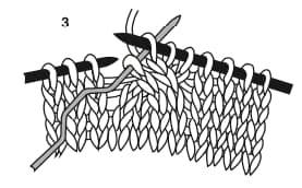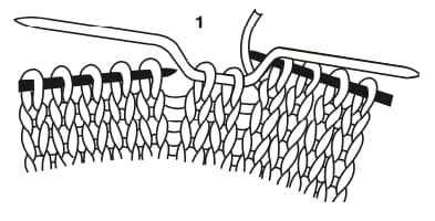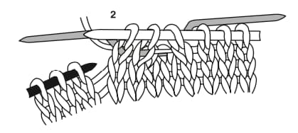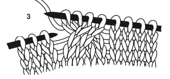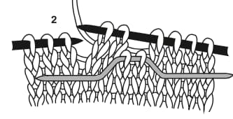 On fonctionnera en 2 temps : on tricotera d’abord 2 mailles, puis 2 autres mailles, soit un total de 4 mailles (voir le pas à pas ci-dessous).