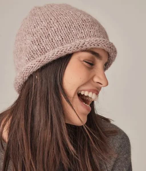 C’est le cas du bonnet Bonito de notre tuto vidéo ci-dessus, et aussi de ce modèle de bonnet Daniela dont le bord roulé forme un léger revers.